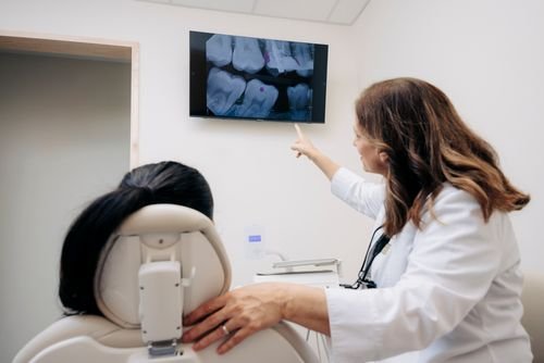 The dentist explains available treatment options and estimated costs.